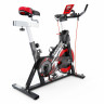 Спин-байк RAVS чёрного цвета имеет прочную стальную раму, что повышает его устойчивость и обеспечивает быструю езду. Он также оснащен большим алюминиевым маховиком с инерционным весом 19 кг, который обеспечивает дополнительный импульс и реалистичные ощущения от езды с препятствиями. Максимальный вес пользователя до 150 кг.