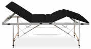 Каркас кушетки выполнен из трубчатого алюминия с системой тросов, что позволяет столу выдерживать большие нагрузки до 200 кг. Ложе имеет ширину 600 мм. и выполнено из влагостойкой фанеры, покрытой 16 см слоем эластичного полиуретана. Полиуретан обшит специальным винил-люксом, который не прихотлив в обслуживании, легко чистится и дезинфицируется. Благодаря своей простой конструкции и возможности складываться в небольшой чемодан, кушетка не будет занимать большого пространства в вашем помещении.